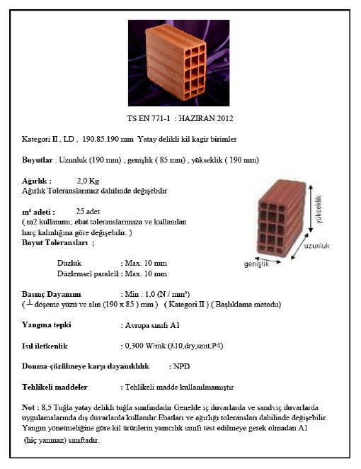 Ağırlık : 2,00kg.Kullanım Adedi : 25 adet m2Ebatlar : 19x8,5x19 cm.Garanti : CEPaletdeki Adedi : 493 Adet