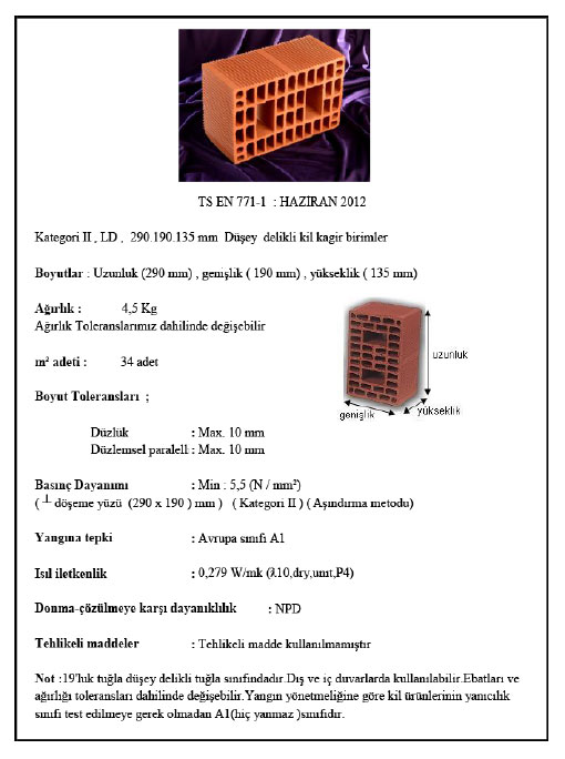 Ağırlık : 4,70kg.Kullanım Adedi : 22 adet m2Ebatlar : 29x19x13,5 cm.Garanti : TSE-CEPaletdeki Adedi : 180 Adet